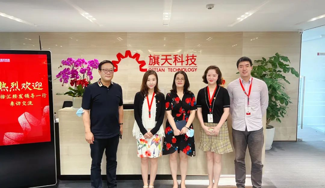 6月28日,徐汇投资促进第四分中心、上海中徐汇经济发展有限公司党支部书记赵红、副总经理许明君走访旗天科技上海总部,公司副总裁钱静雯带队接待并简要介绍公司。双方就疫情后企业复工复产情况及未来政企合作方向进行了交流。